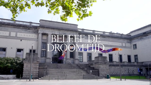 Om de tentoonstelling aan te kondigen wil het MKG mensen ‘De Droomtijd’ laten beleven door alle tijdsaanduidingen, in én rond het museum, te vervangen door een regenboogslang. Deze regenboogslang is het mythisch wezen van de Aborignals dat het landschap vormde in een tijd die niet te duiden valt. We vervingen verschillende tijdsaanduidingen met een sticker of een doek zoals de klok in Tour & Taxis en La Quincaillerie met daarop ‘Beleef de droomtijd’.